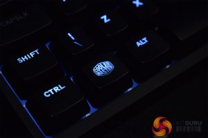My only complaint with the lighting steams from the fact that the Windows key has been replaced with a Cooler Master logo. Given that the LED is above the switch, but the logo takes up most of the key-cap, the bottom of the logo is noticeably dimmer than the top (as you can see above). It is a very minor issue but it does mar the overall look of the keyboard when the backlight is turned on.