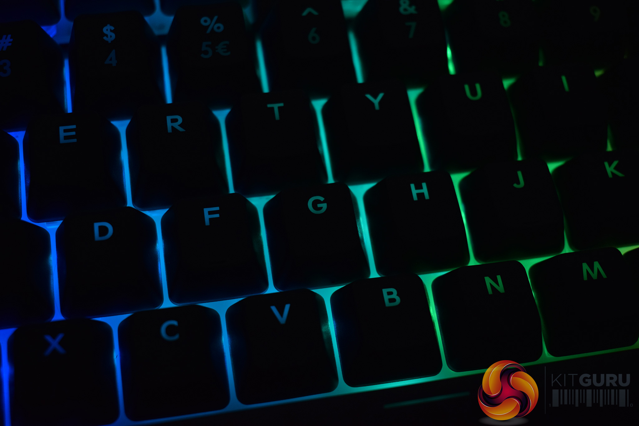 Elsewhere, the on-board controls work very well. Using F1-F4 allows you to configure the RGB lighting, and overall it is very successful. There are plenty of effects to choose from – including rainbow, reactive and static modes – and it is very easy to get your desired colour using the on-board red, green and blue modifiers.
