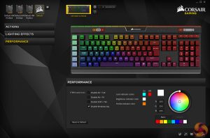 The last software tab is called ‘performance'. This lets you configure what the Windows-lock buttons does – it can also disable Alt+Tab and Alt+F4, for example – as well as change the LED colour used by the profile-switch button.