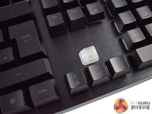 You may also have noticed the light-grey plastic strip which runs alongside the entire outside of the keyboard. This is actually an LED strip – very similar to the ‘LightBar' used in the Corsair K95 RGB Platinum, something I am actually testing at the moment. We take a look at some of the lighting options on the next page.