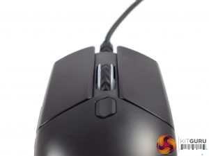 At the top of the mouse is the textured scroll wheel – something which should also help grip in the heat of battle. Below the scroll wheel is another button – but it is not a DPI switch. It actually changes the lighting colour and effects – something we look at on the next page.