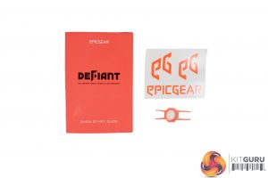 Inside, a small quick-start guide is included, along with a key/switch puller and 3 EpicGear stickers.