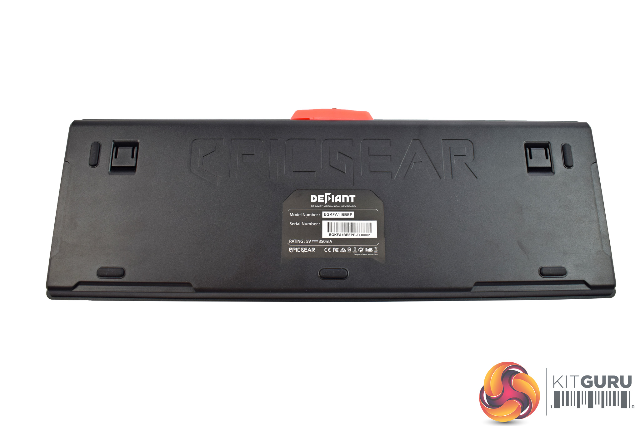 The underside of the keyboard features a large EpicGear logo across the top – although, considering this will not be visible to users, I do wonder why they bothered – while there are also 4 rubber feet and the usual height-adjustment stands.