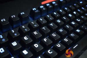 That brings me to the MMS technology – the hot-swappable nature of the switches. I would guess that the thinking behind this is that you can have most of your keyboard configured with the Purple switches – great for typing – but, for example, you can swap the QWEASD switches so these keys use linear switches – generally considered better for gaming. That way, you have a compromise between the best switches for typing, and the best switches for gaming, all on a single keyboard.