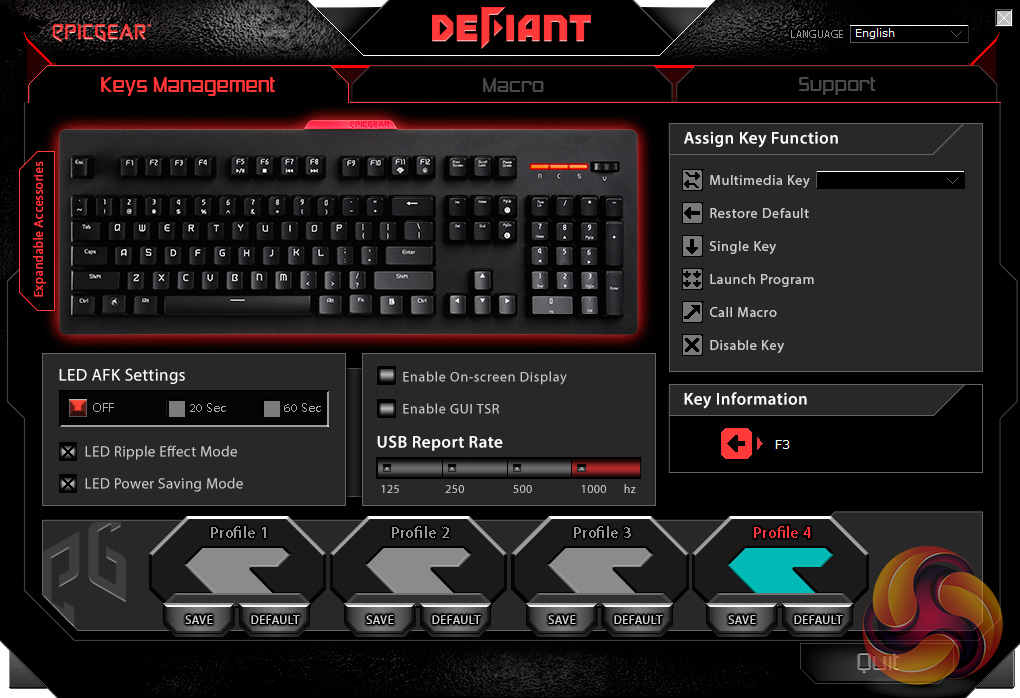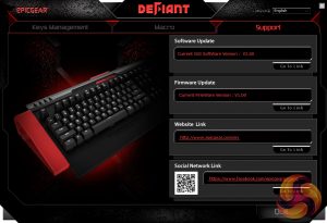Finally, the last page is a support section which lets you do little more than update the keyboard's firmware or software.