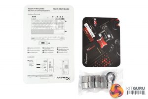 Inside, users get one quick-start guide, a ‘welcome to the HyperX family' greeting card and then 8 replacement keycaps – these are for WASD and numbers 1-4, and have a metallic look and textured feel. A keycap puller is also included.