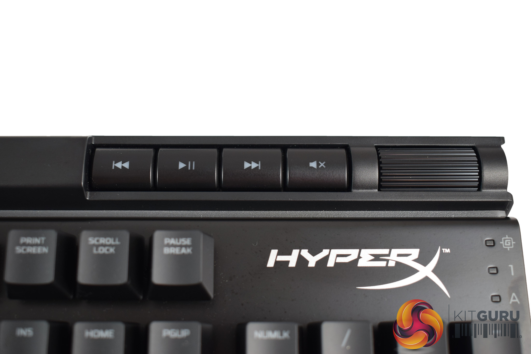 On the right-hand side of the board we have dedicated media keys (play/pause, skip, mute) as well as a volume wheel. These are very good inclusions and definitely elevate the Alloy Elite over its predecessor, while also going a long way to justifying that extra £20.