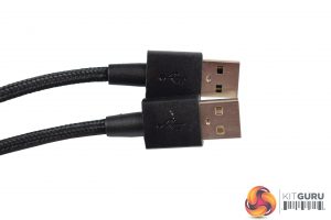 Lastly, the keyboard connects via two USB connectors – one for the keyboard itself, one for the passthrough. The braided cable measures 1.8m long.