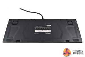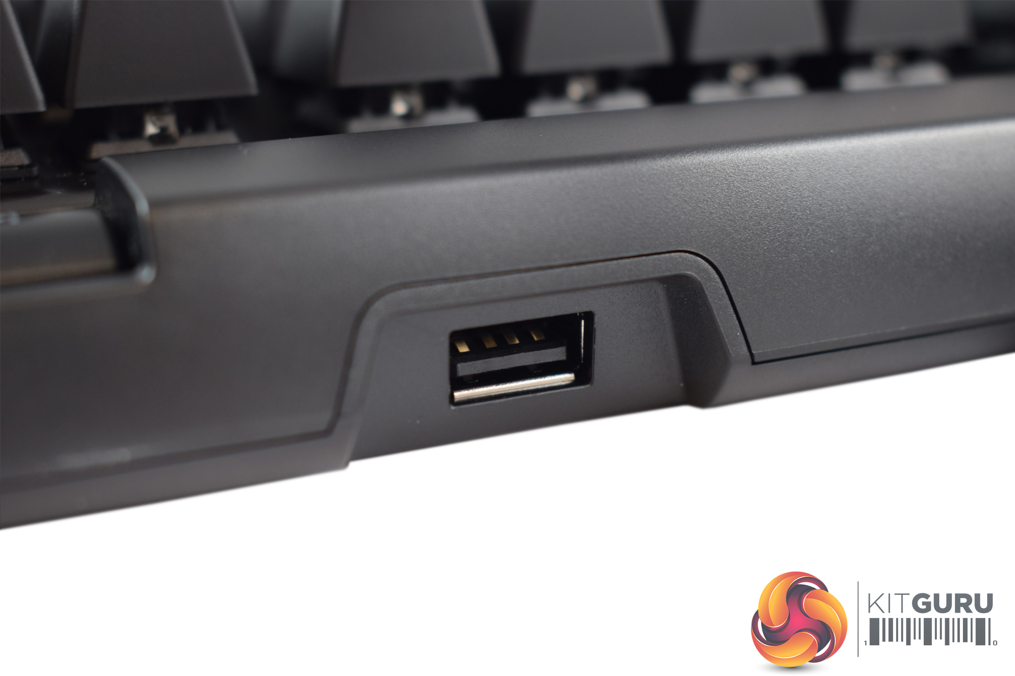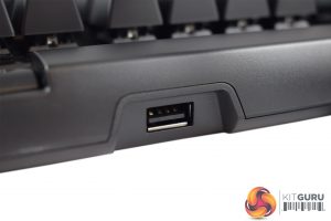 On the back of the board there is a single USB 2.0 port, and this is another area where we see an improvement from the original Alloy FPS – on that keyboard, there was a secondary USB port but it only provided power. With the Elite, this is now a proper USB pass-through port, so you can plug a mouse or headset in and it will work as normal.
