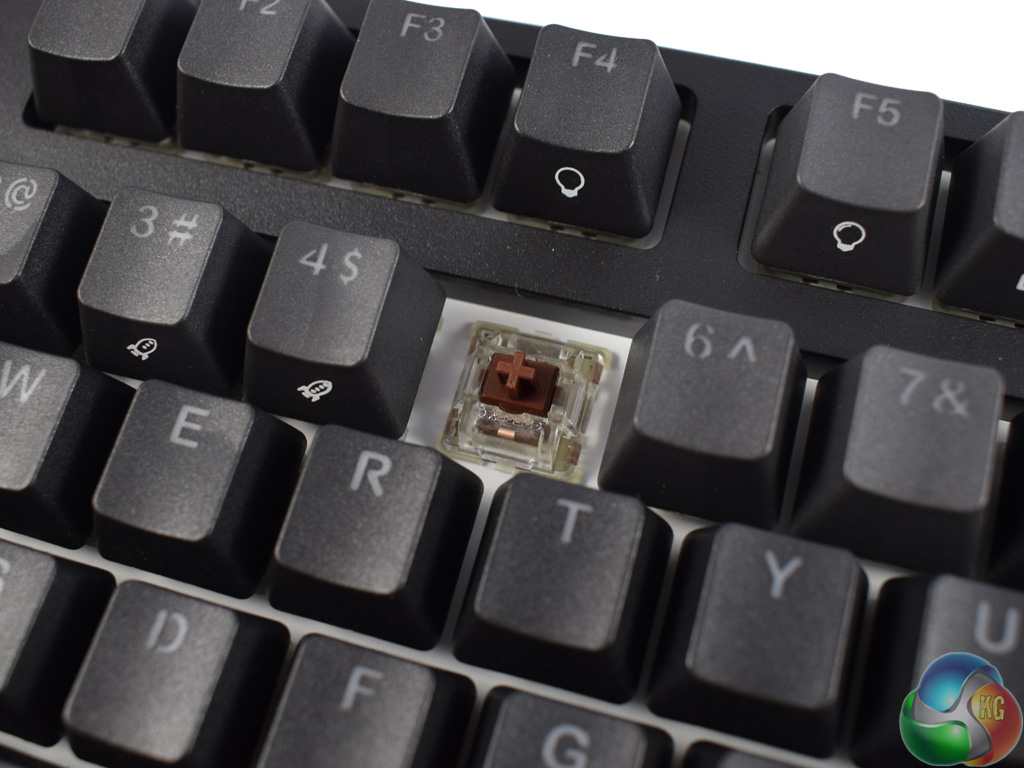 Lastly, removing the keycaps we get a look at the Cherry MX switches below. My F108 sample shipped with Browns, while the F107 shipped with Blues. Blues are my personal favourite, but there is also the choice between Black and Red switches should you prefer those.