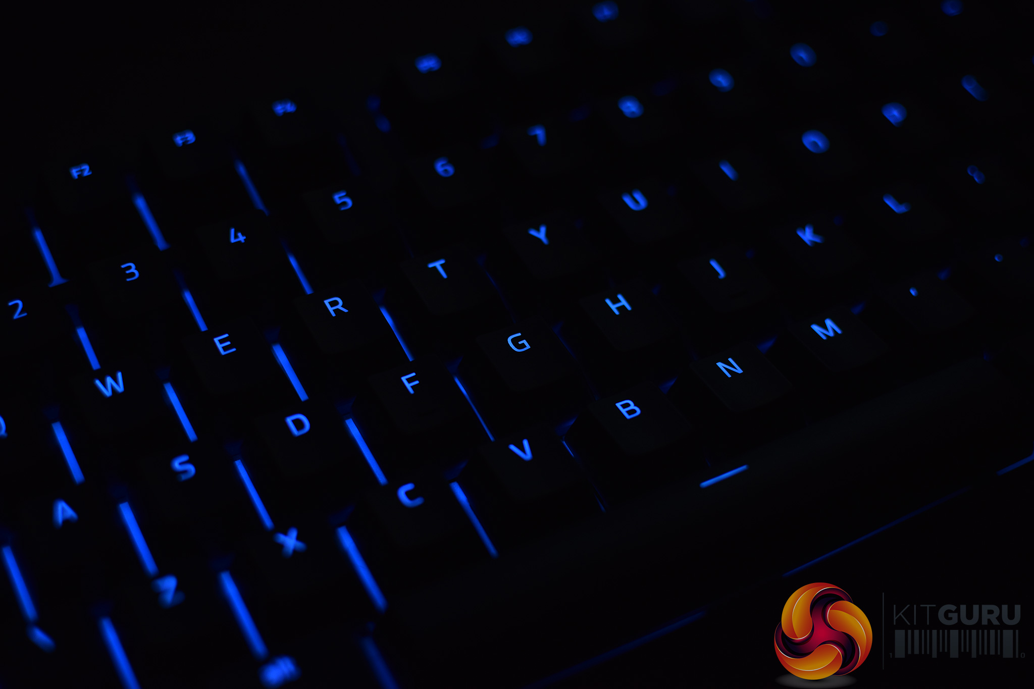 As for the day to day use of the BlackWidow, it is a lovely keyboard for both typing and gaming. This is all due to Razer's own brand of switch used here, in this case the Razer Green. It's broadly similar to a Cherry MX Blue in that it is both tactile and clicky, but it is slightly lighter with an actuation force of 50g, not 60g. It also actuates at 1.9mm, which is 0.1mm lower than a standard Cherry switch.