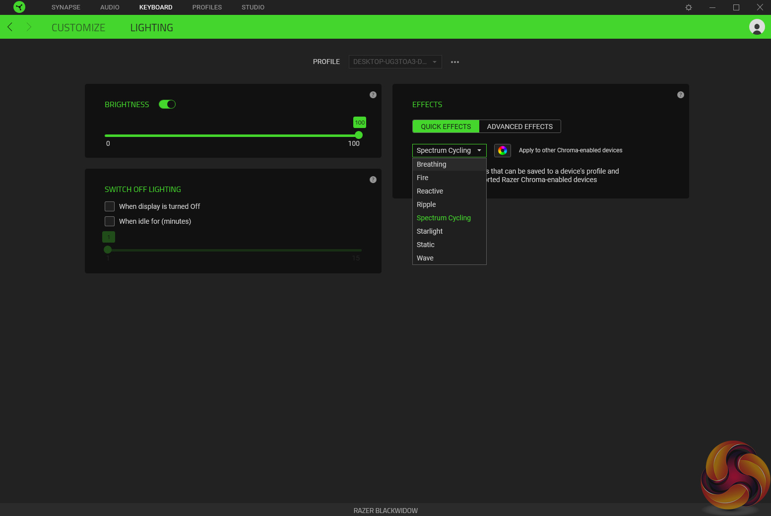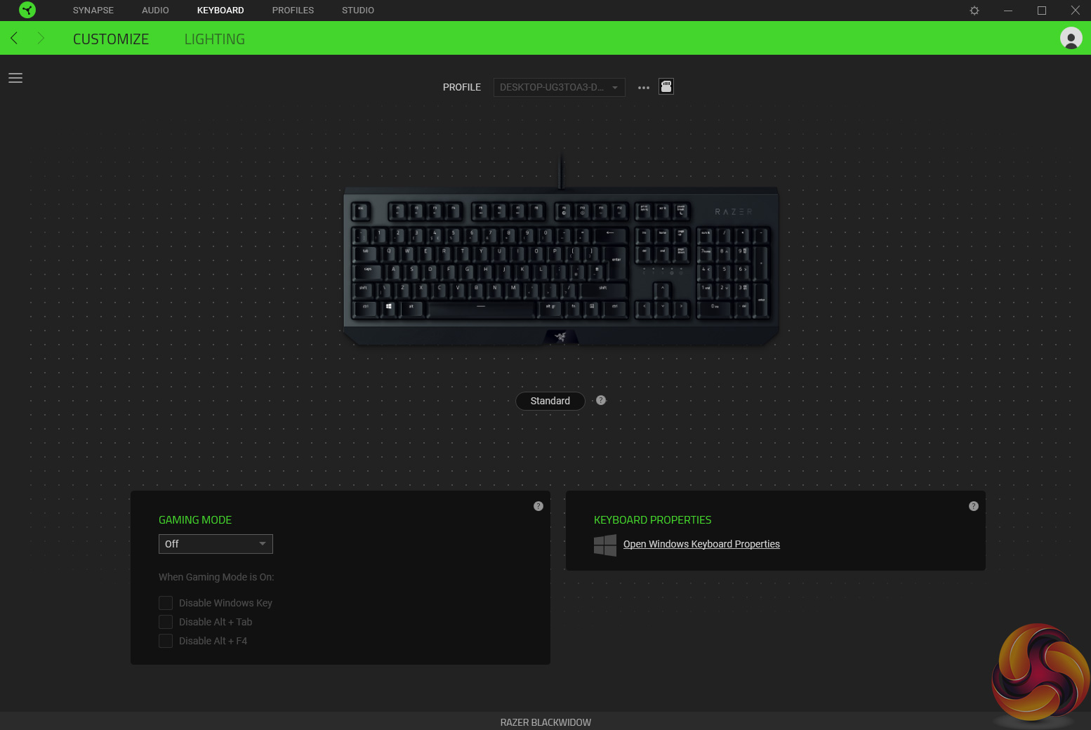 The BlackWidow uses Razer Synapse 3 for the software control. It's a relatively simple implementation for the BlackWidow, with control over two main areas – key layout and profiles, and then the LED lighting.