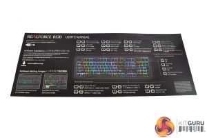 Other than the keyboard itself, the only accessory is a large ‘manual' which just points out a few of the on-board functions (like changing the RGB lighting).