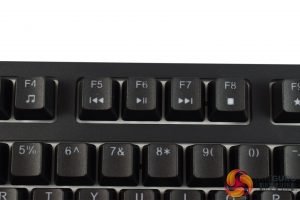 Elsewhere, there are also some play/pause/skip buttons available, but they are secondary functions assigned to the F-keys, rather than dedicated keys.