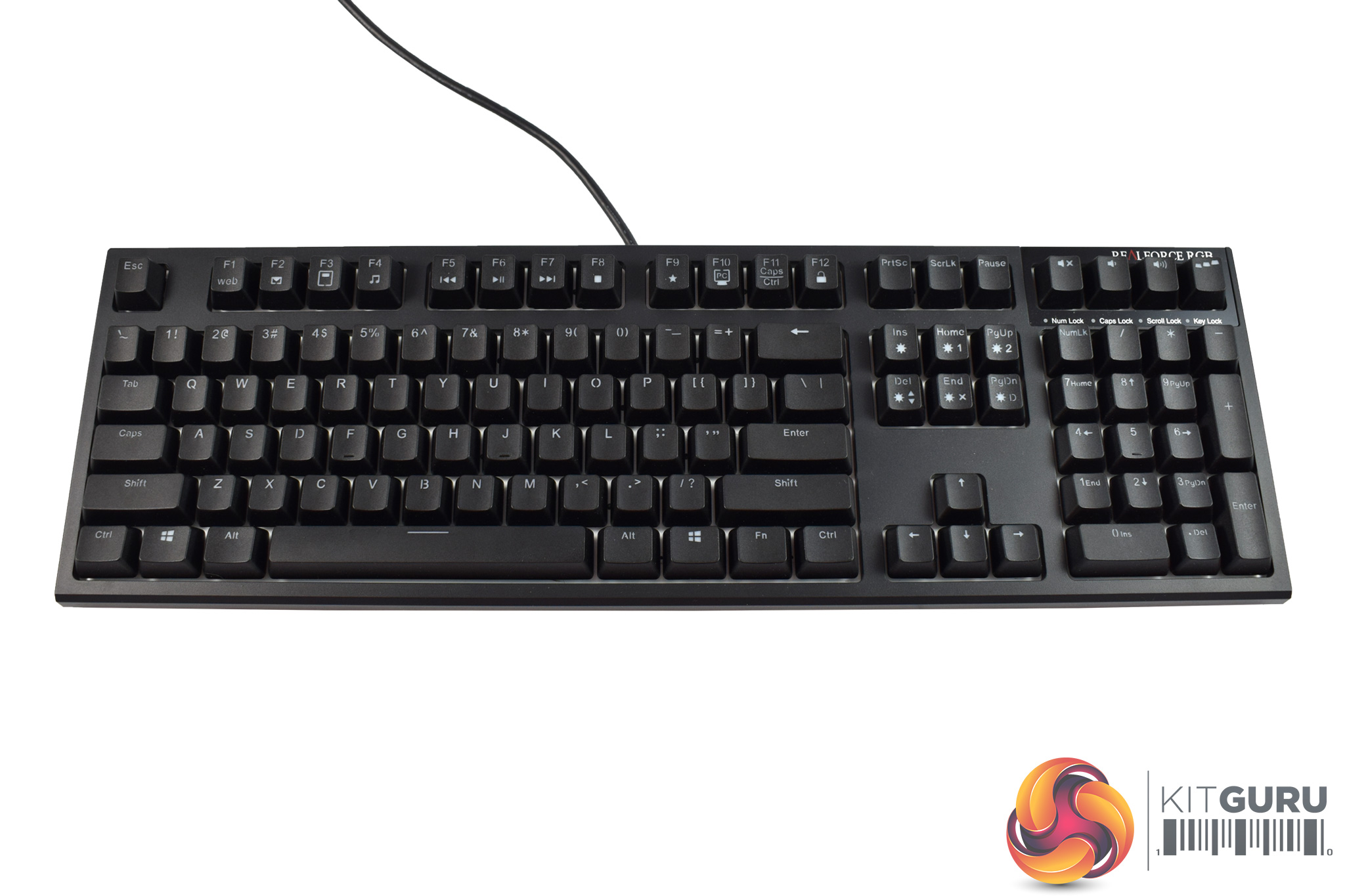 In regards to keycaps, it is also worth mentioning that the Realforce RGB uses double-shot ABS keycaps, so they should be extra-durable and the legends will not wear away (unlike keycaps with printed legends).