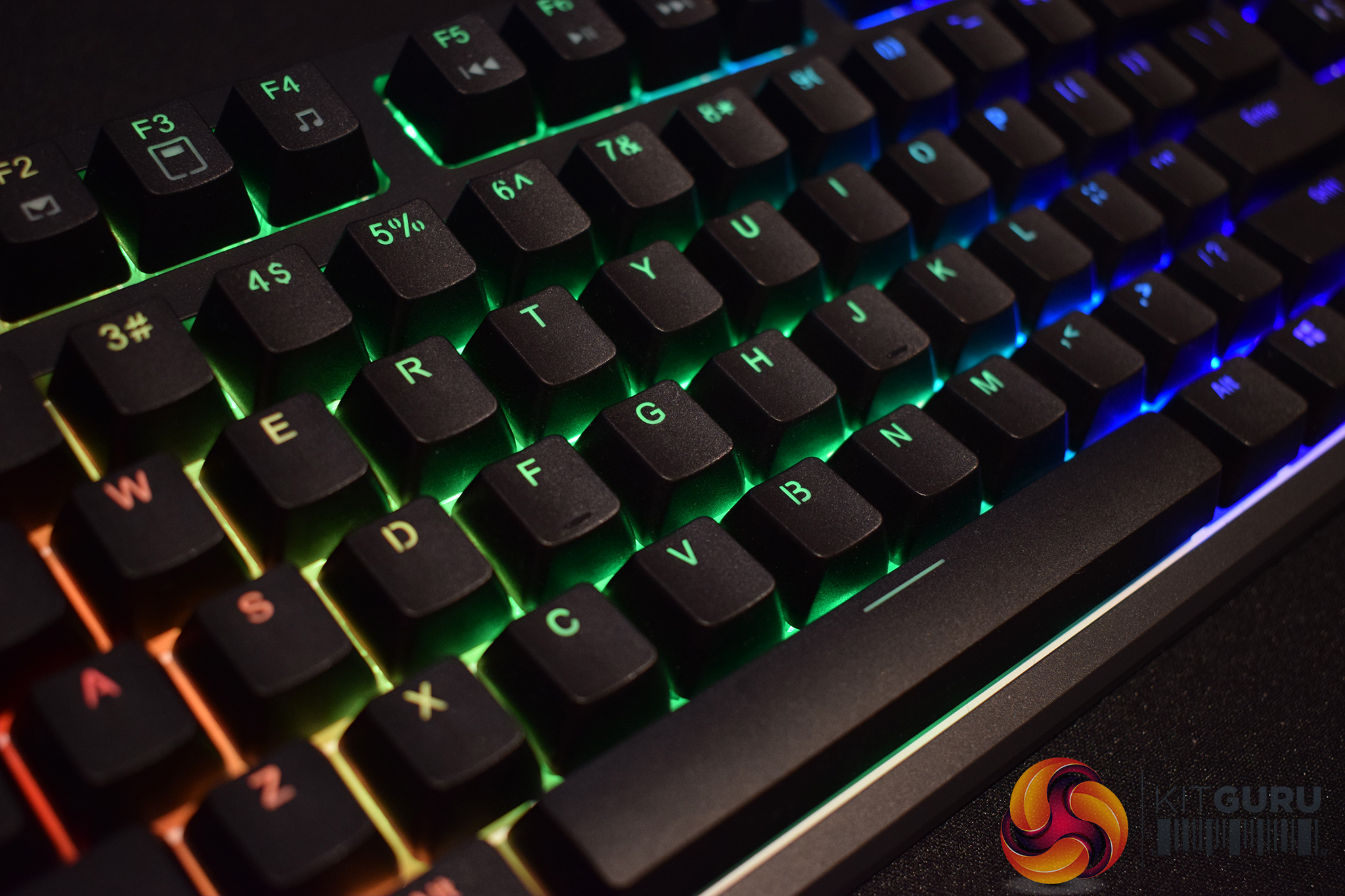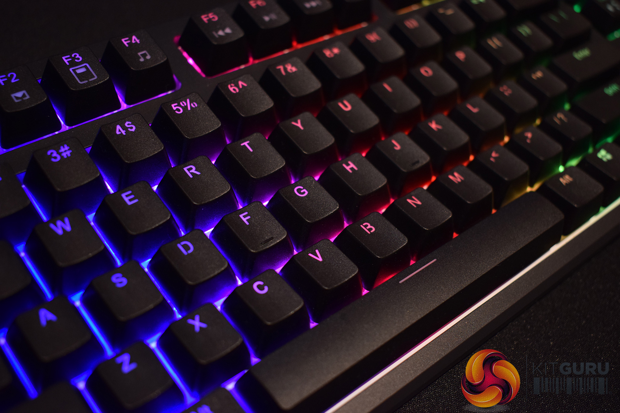 The RGB lighting control is also good, though perhaps not quite as polished as competing manufacturers' lighting options. You can choose from a number of preset options, such as a colour wave, random and reactive, or you can even create your own setting with per-key illumination.
