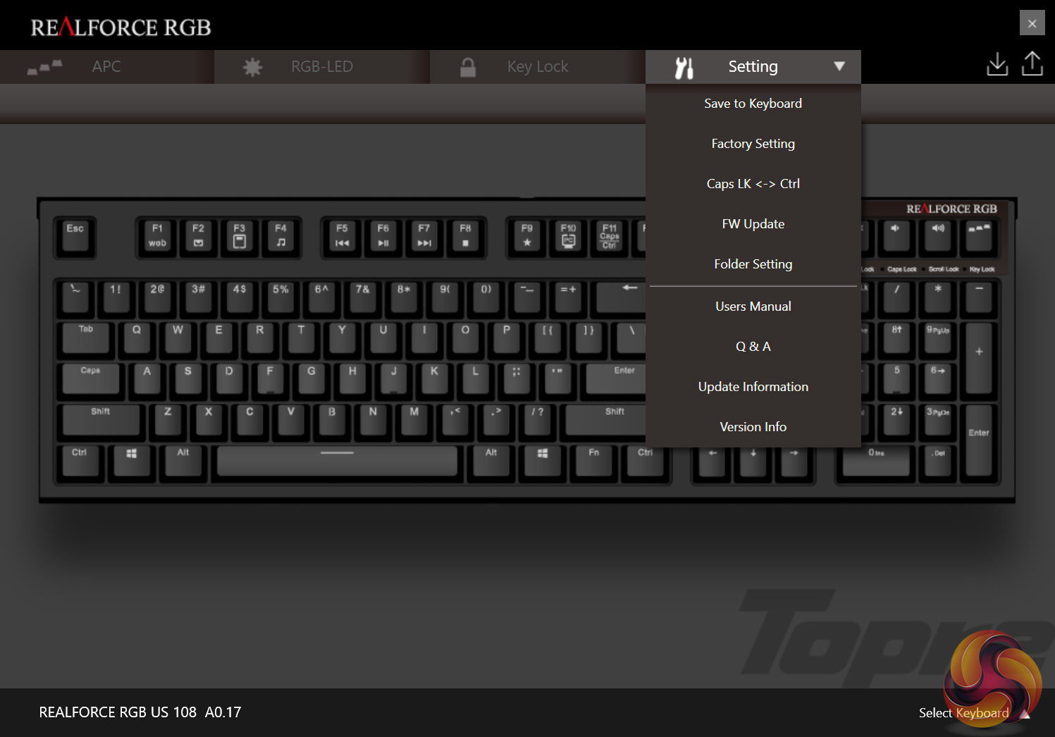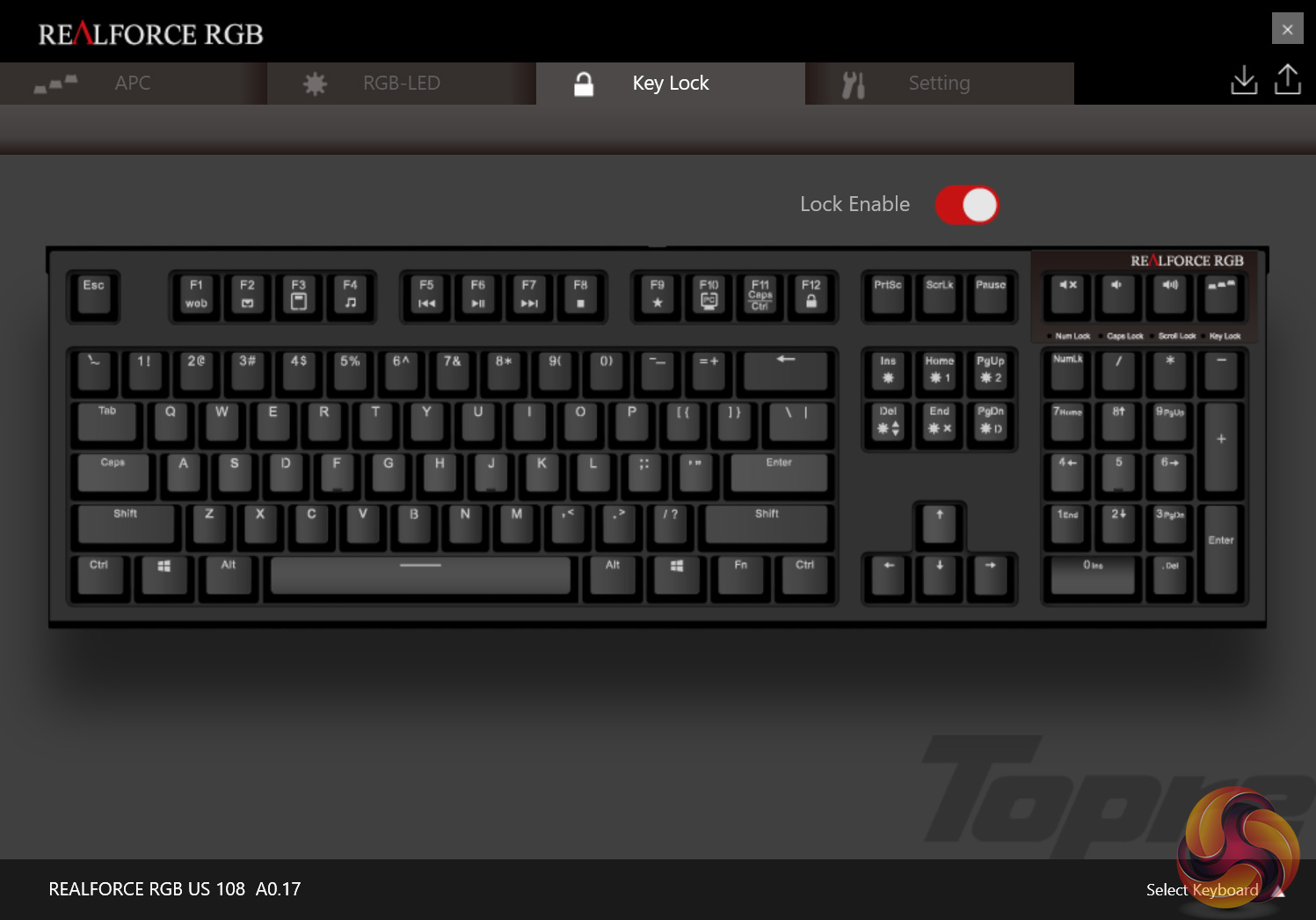 There are also plenty of gaming features to compliment the APC tech, too. For starters, there is a keylock function, so you can choose which keys you want to disable using the software. The Realforce RGB also features NKRO (N-key rollover), so Topre has you covered in that regard.