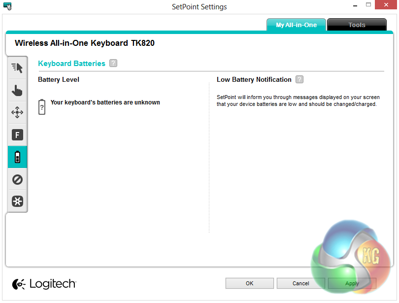 The final two tabs let us check the battery level of the keyboard and disable keys that we don’t want to activate accidentally, such as the Windows key and scroll lot.