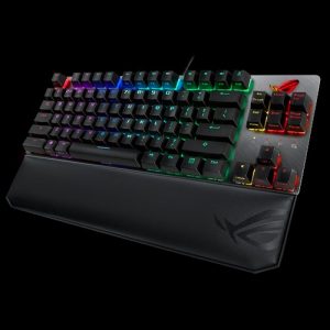 The ROG Strix Scope TKL Deluxe is a new mechanical keyboard from Asus that is optimised for FPS gaming with a tenkeyless layout to provide extra desk space for mouse movement. Asus claims the keyboard is constructed from high-quality materials and offers users an ergonomic design with a padded wrist rest for comfortable long gaming sessions. The ROG Strix Scope TKL Deluxe is available with a range of key switches including Cherry MX RGB Red, Blue, Brown, Speed Silver and supports n-key rollover with an instantaneous 1000Hz polling rate. RGB LED lighting can be customised and controlled using the ROG Aura Sync software, so users can personalise the keyboard with their own designs.