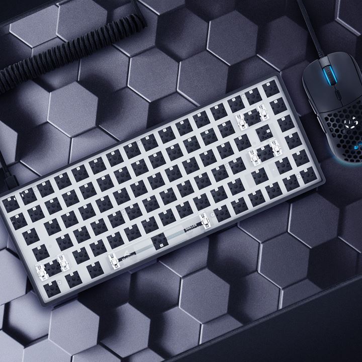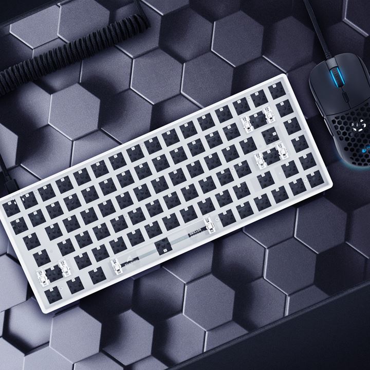 Sharkoon has added three new models to the Skiller SGK50 keyboard line. The latest versions are 75% layout keyboards, available in black or white, with a special white version having blue accents and white PBT keycaps. The SKILLER SGK50 S3 is also available in barebones form, without any switches or keycaps, allowing you to choose your own for a fully custom board.