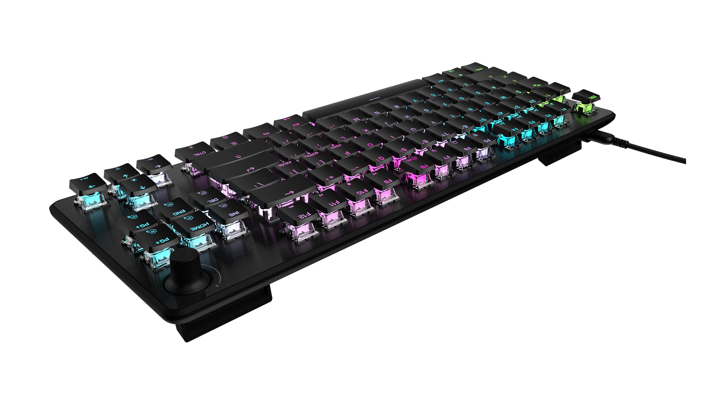 The new Vulcan II TKL is a compact tenkeyless mechanical keyboard that brings a host of fan-favourite Roccat features under its new banner. It features hot-swappable and pre-lubed Titan HS mechanical switches, a brushed aluminium top plate, and internal sound-dampening foam. It's also fully integrated with the new “Swarm II” software, supporting AIMO intelligent lighting and the Easy-Shift[+] key duplicator function.
