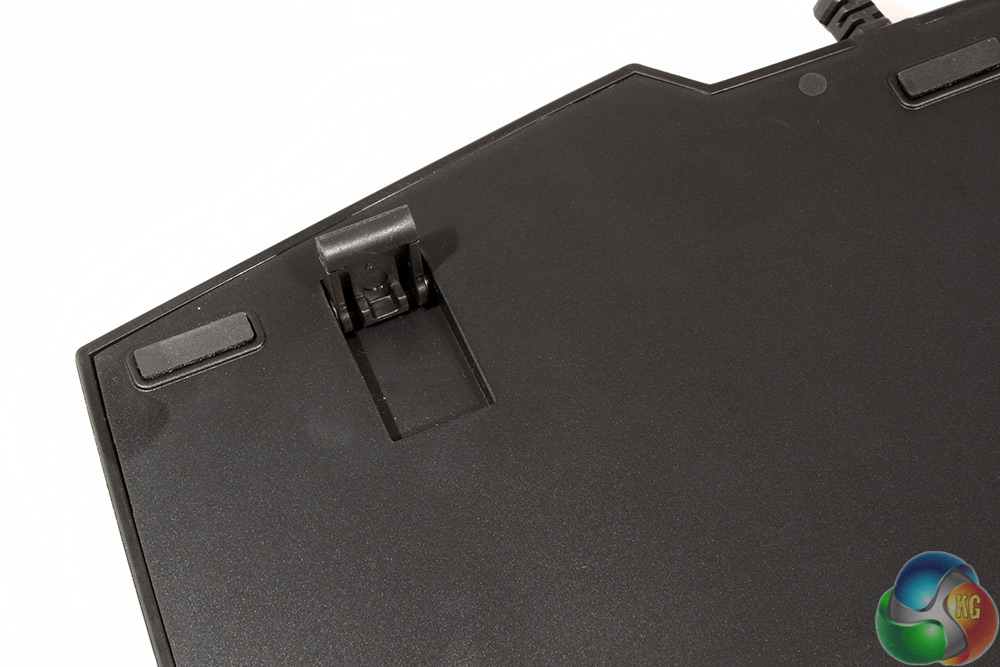 The underside of the STRIX Tactic Pro is pretty unremarkable, with the usual flip-up feet to angle it for those that prefer that set up. There are also small rubber feet located in specific places to make sure that the board does not slide around during use.