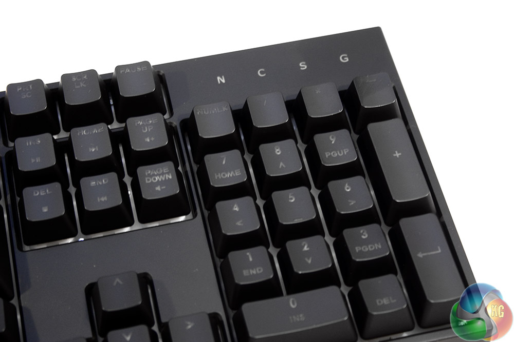 The keyboard is matt black with a similarly understated design. It is very neat and compact, with a white underbelly beneath the keycaps which should help dissipate the LED backlighting uniformly.