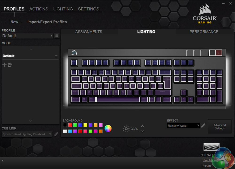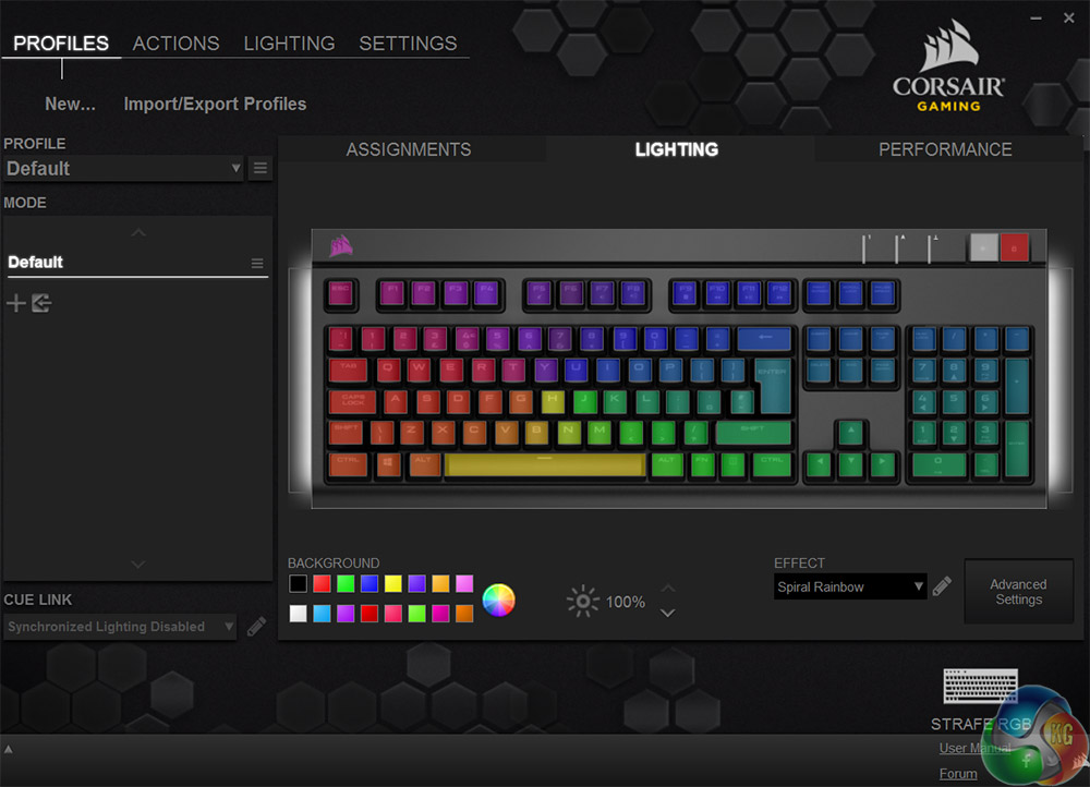 Other features of the board such as the 100 per cent NKey rollover, media keys, windows-key lock are all welcome additions, especially alongside the updated Corsair Utility software. The lighting options in particular have been expanded from the standard STRAFE model , offering a number of different out of the box lighting modes, or you can make your own, much like we did with the Corsair Gaming Vengeance K70.