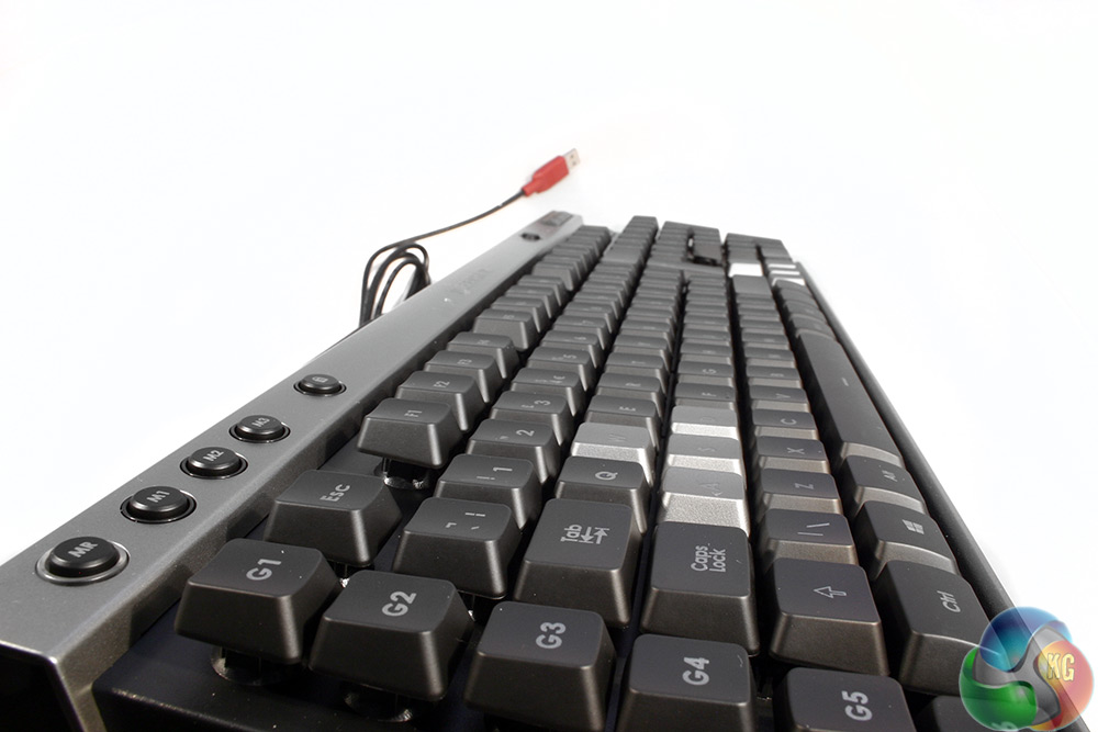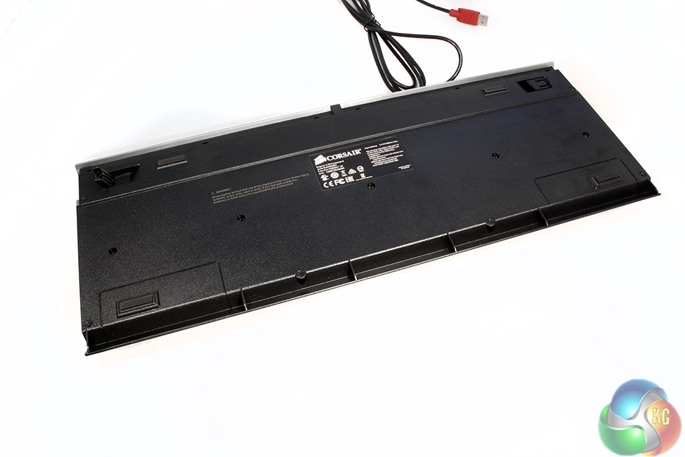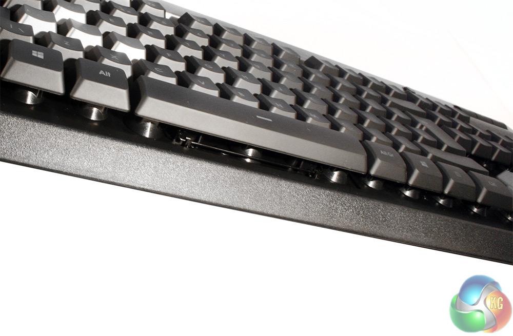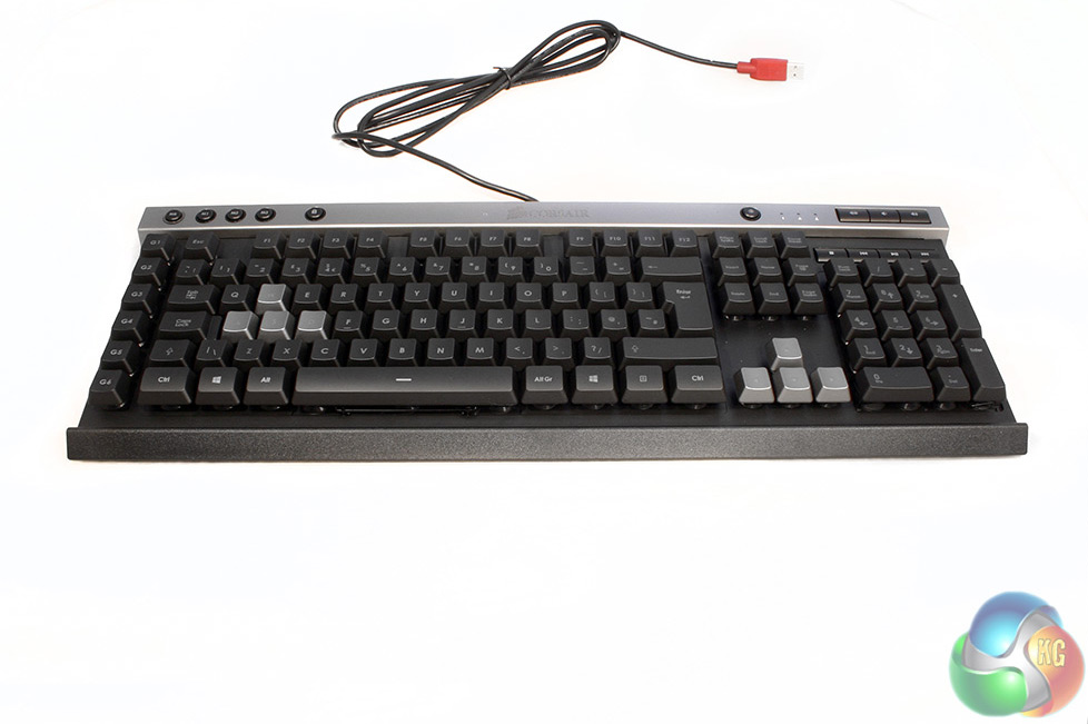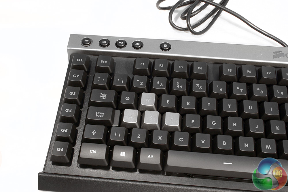 One aspect of the keys which does separate this board from some of its cheaper cousins is that despite being rubber domed, and therefore part of a full length membrane, Corsair has separated each of the switches off with plastic housings. They're also raised from the main body of the board, which should protect them from any spill damage.