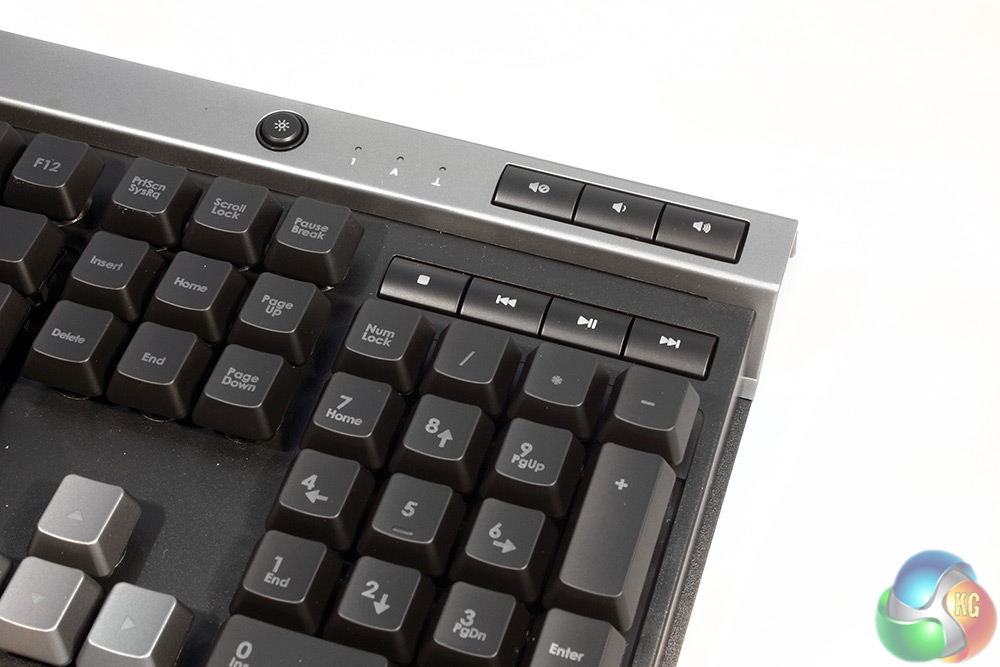 At the other end of the Raptor K40 – you have your numpad and other typical keys, along with media buttons. These are slightly different than all the others on the keyboard and work quite nicely, but need a little more force to activate.