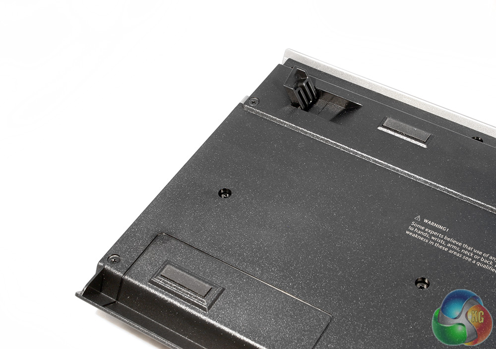 The back of the board is unremarkable, with traditional product information and rubber stamps to keep the keyboard as still as possible. Each of the top corners also has some little risers so you can have it at an angle if you choose.