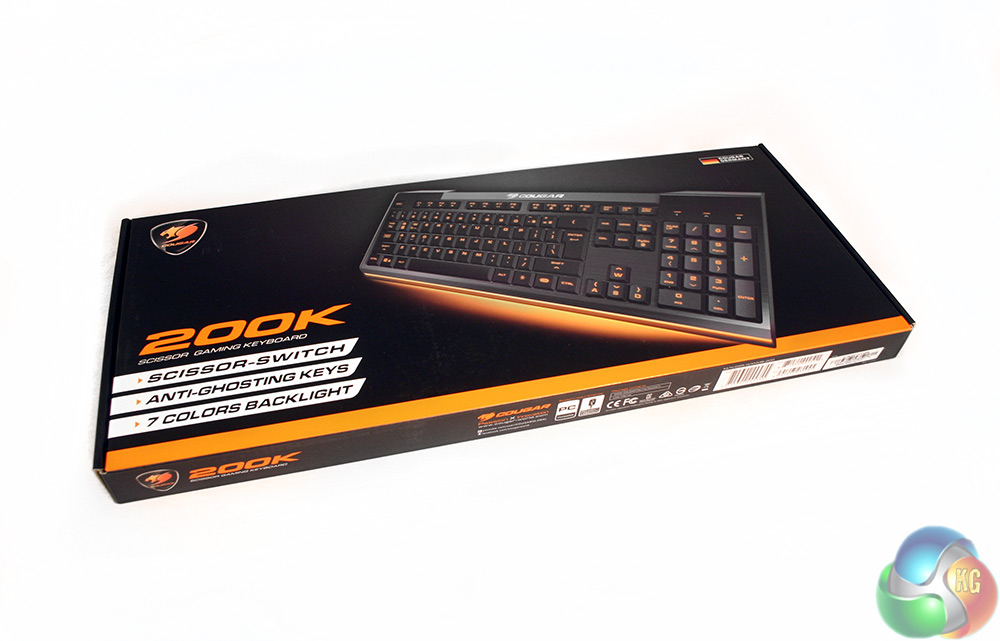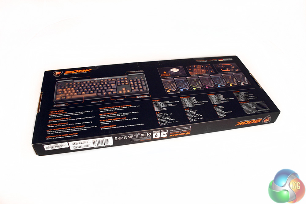 The packaging for the Cougar 200K is more premium than you would expect for a keyboard that costs less than £30 in most outlets. It has glossy and matt card coatings, along with a large image of the board all lit up and a number of features listed in bold white to make them easier to read.