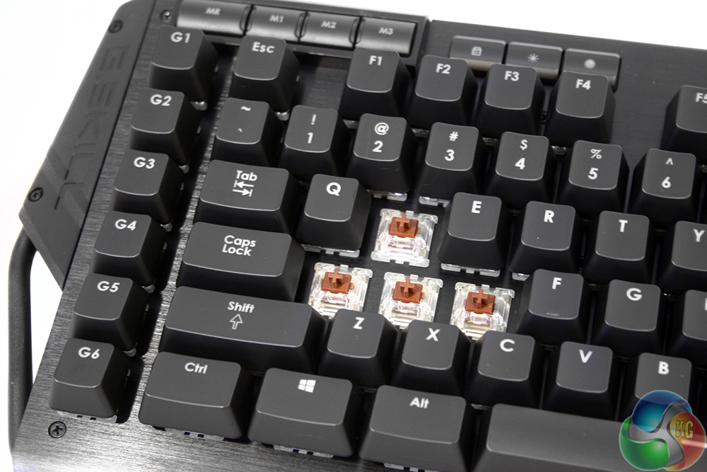Underneath the caps are the Cherry MX Brown switches, though this type is the same as the ones we saw in the Corsair Gaming Vengeance K70. In-fact much of that design can be seen in this board, from the media keys to the brushed aluminium body. Perhaps they are made via the same OEM partner…