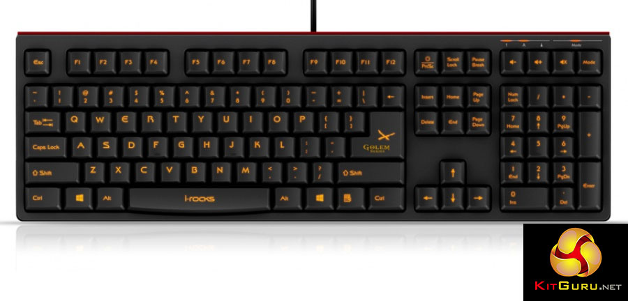 Although we do love a good mechanical keyboard here at KitGuru, we're not blind to the fact that it is not the only way to do things. There are of course traditional membrane, rubber done keys and the more laptop orientated scissor switch, a modified version of which is what i-rocks has utilised in its new Golem Series K50E board. It has quite a standard look compared to the average LED festooned gaming board, but this one does have a basic level of backlighting, a few media keys and some subtle styling.