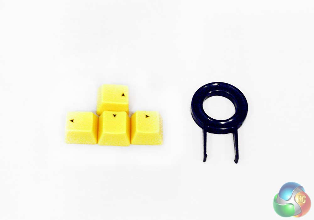 Also included is a key changing tool and four bright yellow direction keys, so you can either replace your WASD with these if you are a shooter fan, or the directional keys if you prefer.