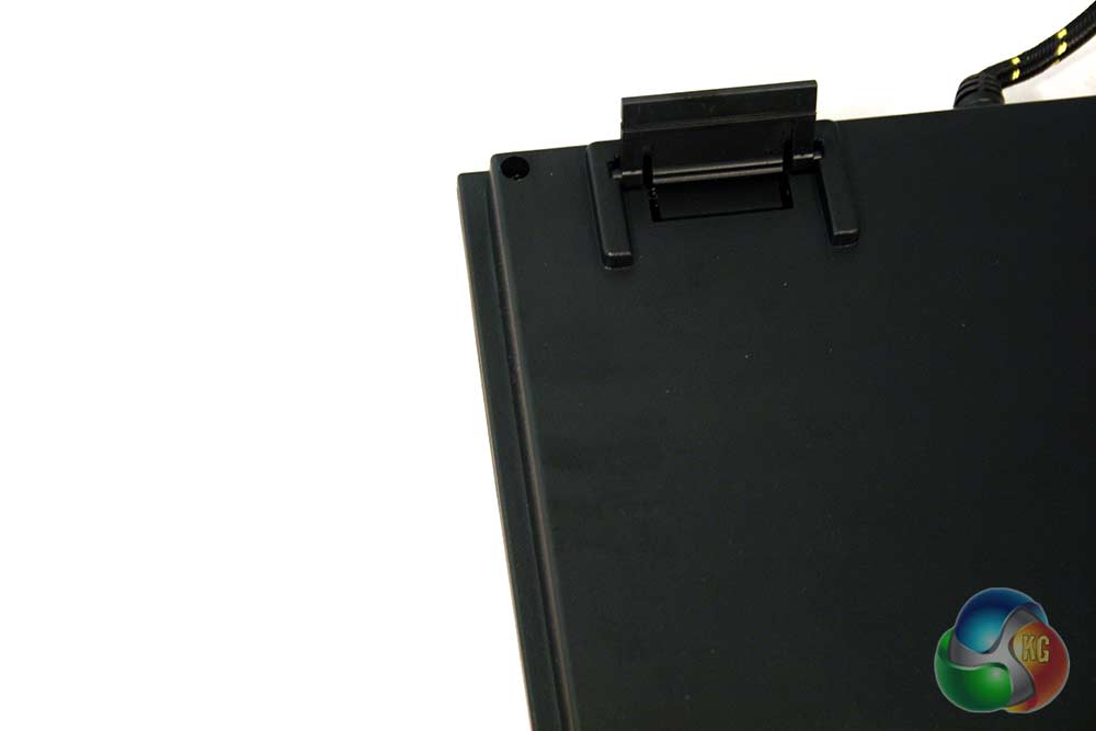 The lock key indicators are all little yellow LEDs like the backlighting, but sit behind this oddly out-of-place looking brushed plastic. I can imagine there needed to be something there other than the matt black frame otherwise the light wouldn't shine through, but why not just a clear indicator like the one on the keyboard keys?
