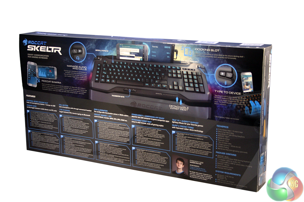 The packaging for the Roccat Skeltr keyboard is much more typical than the oddly shaped box of the Ryos MK FX RGB that we looked at earlier this year. It is highly informative, giving you a large picture of the keyboard on the front (tablet not included) and the whole box is built to a high standard.