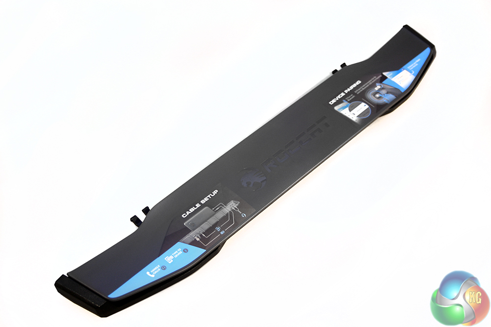 The wrist rest is detachable, but clips on easily to the underside of the board. It is made of the same plastic as the rest of the keyboard and features a Roccat logo in its centre. There are also a couple of informative stickers on its left and right hand sides, helping you out with some of the more interesting features of the Roccat Skeltr.