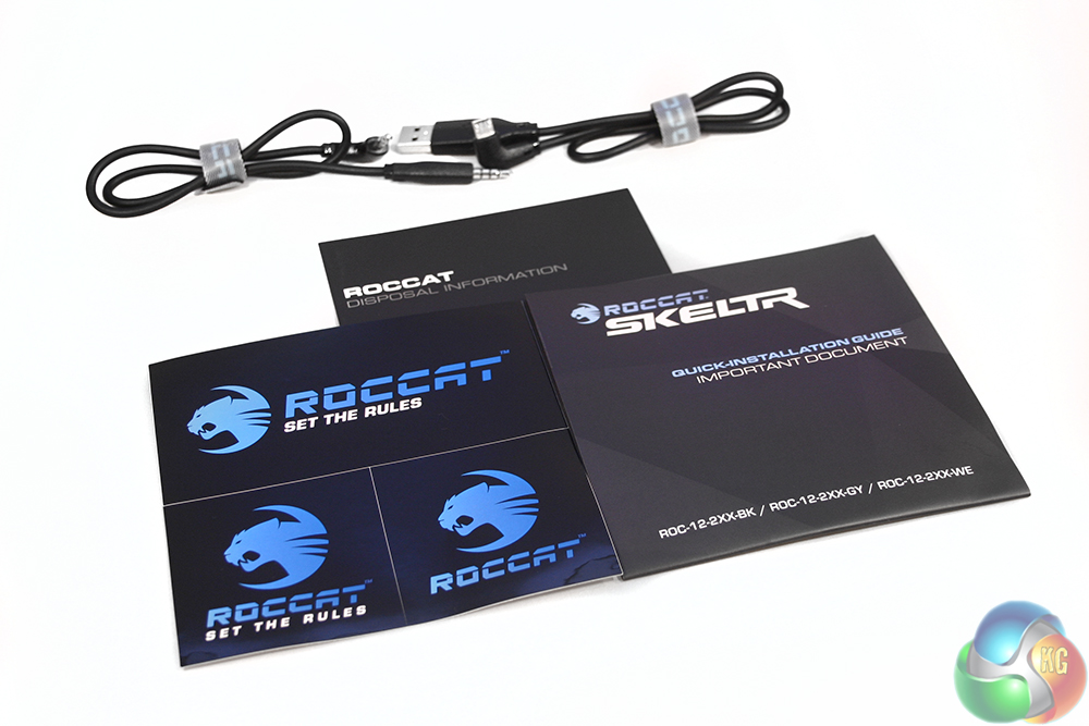 Along with the keyboard there are some stickers, a quick start document and a warranty leaflet, as well as some additional micro-USB and 3.5mm cables for pass through purposes.