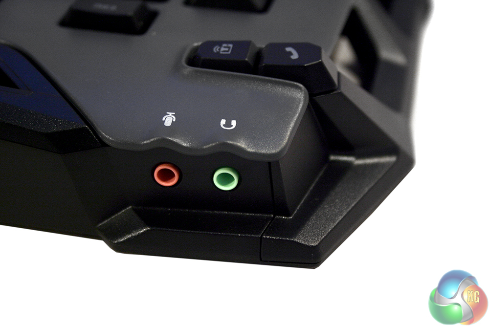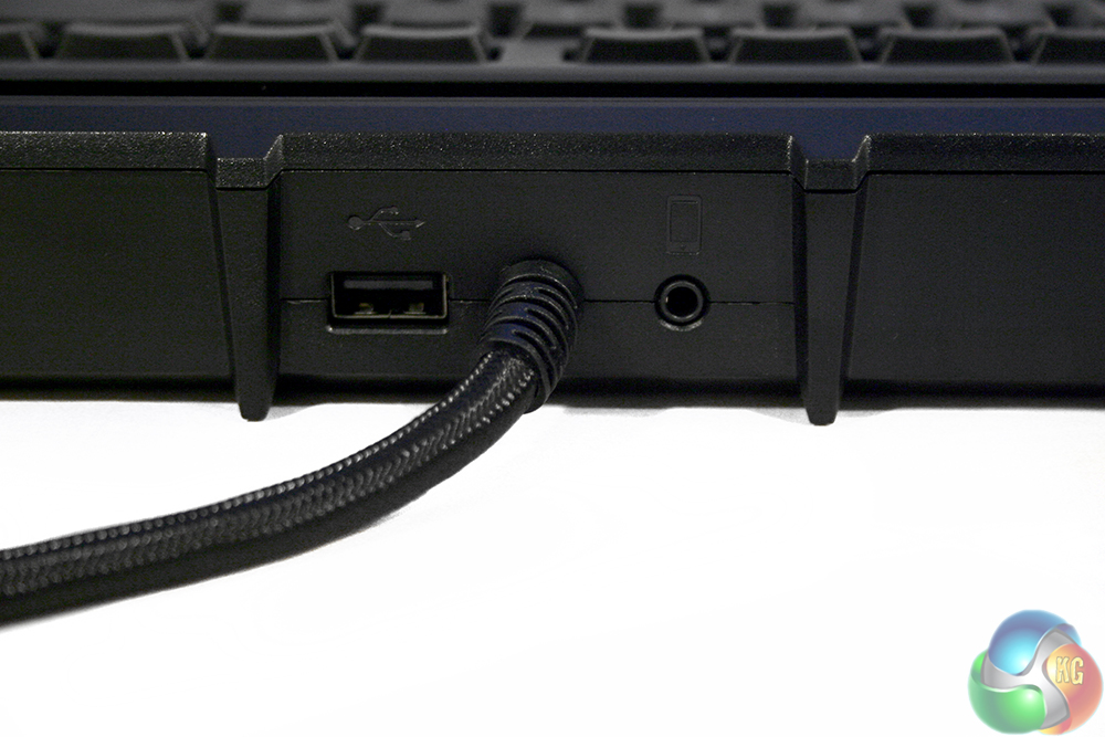 There are a few pass through ports on this keyboard, including a USB and headphone jack on the back, and a microphone and headphone port on the left hand side too.
