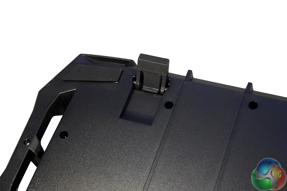 The underside features several large, rubber feet for grip, as well a rubberised extender legs for angling.