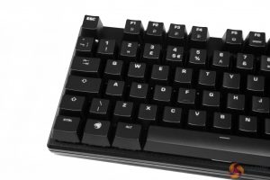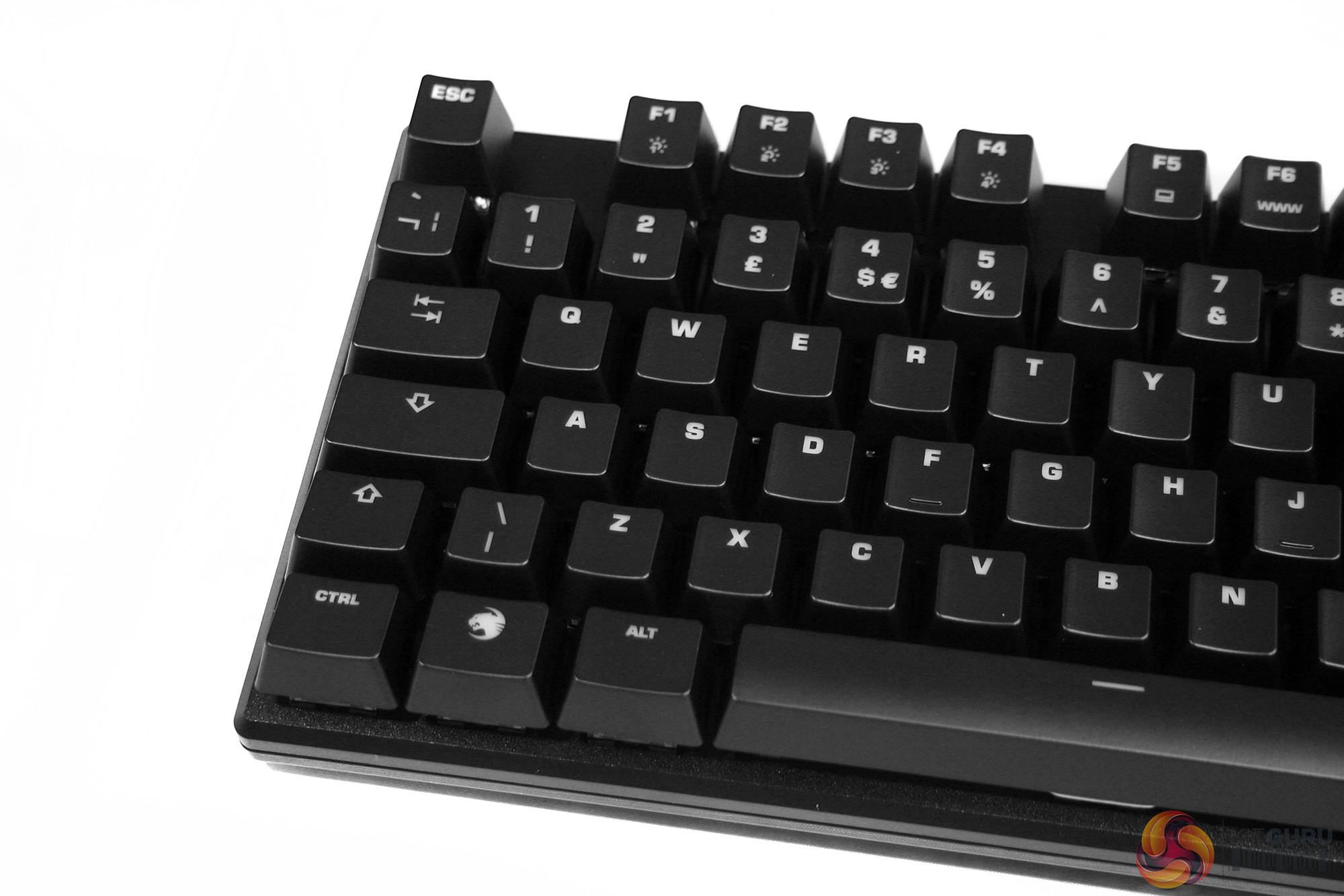 Notice too that the switches themselves feature clear housings to improve LED light proliferation throughout the key cap. However with the top-mounted LED (and an obvious one at that) there is always the potential for some light not to shine through the indicators that appear at the bottom of the key cap.