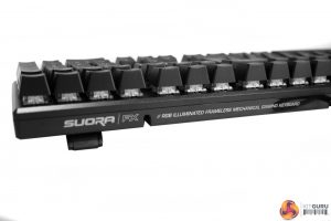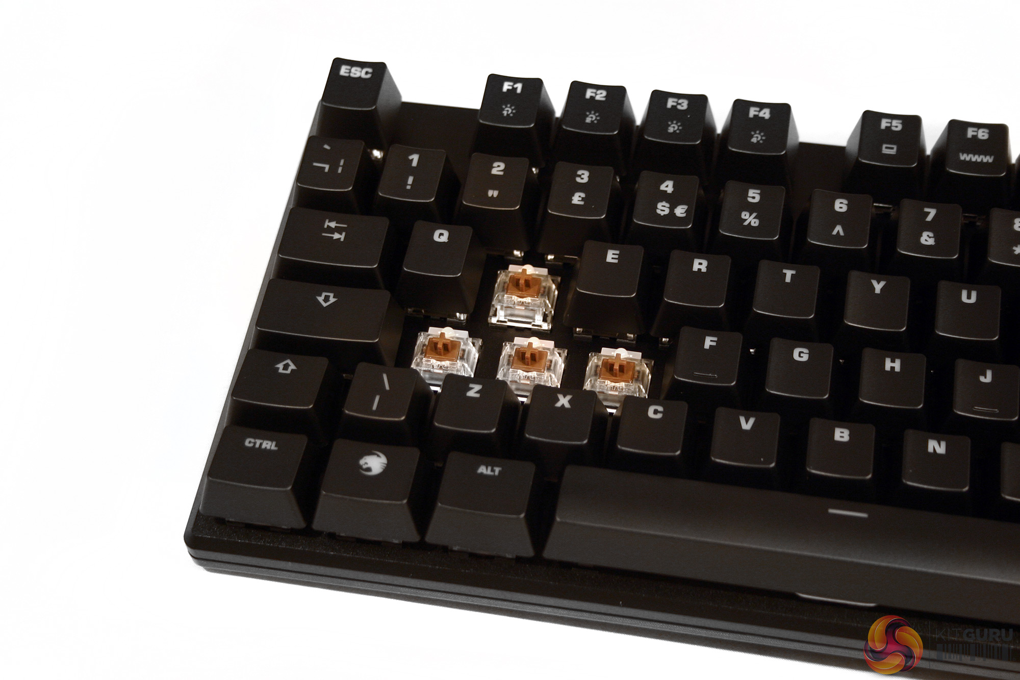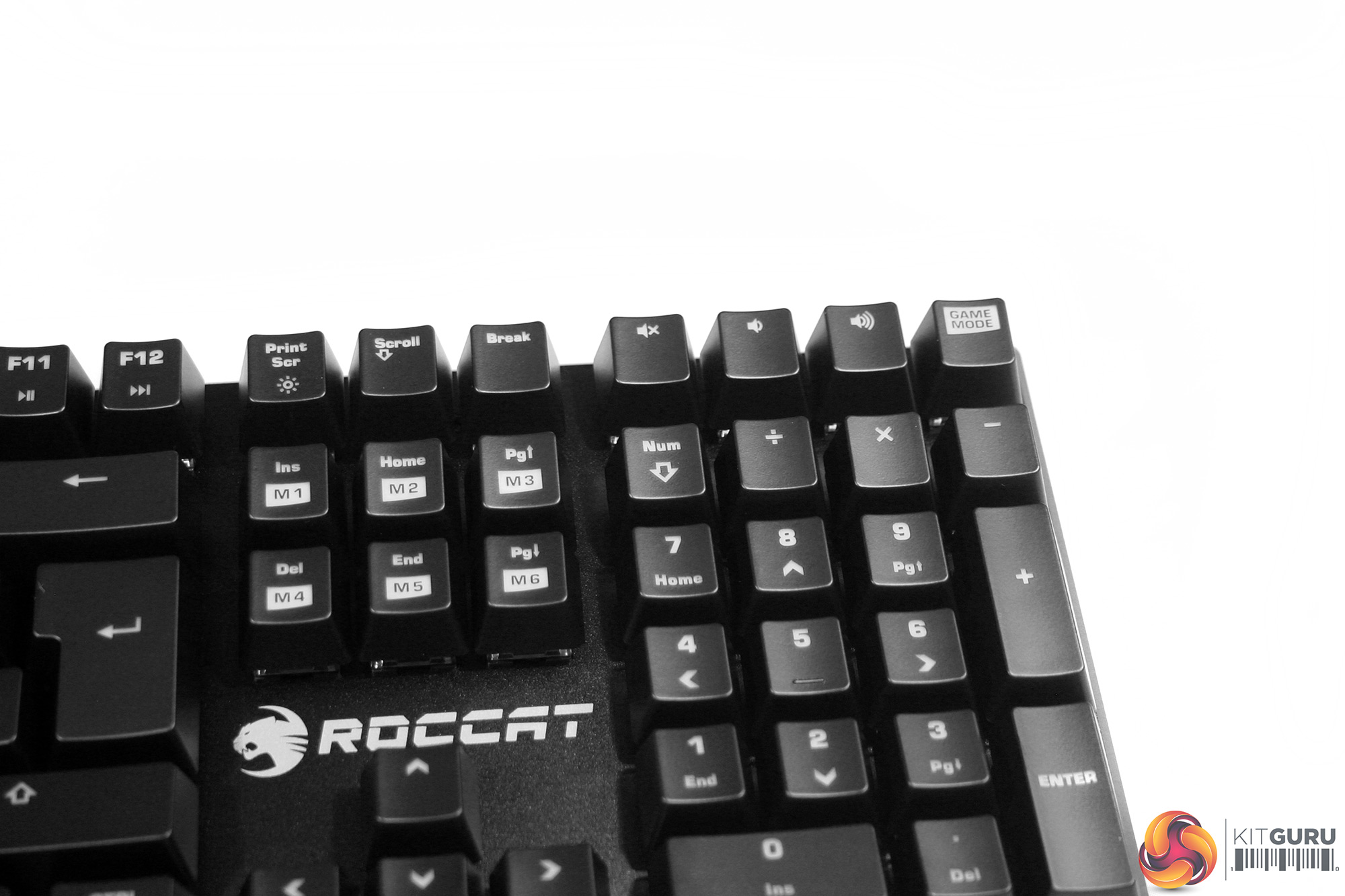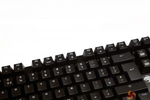 The keys of the Roccat Suora FX have that typical, slightly concave shape and feature clear-plastic lettering, to allow the backlighting to shine through when the board is powered on.