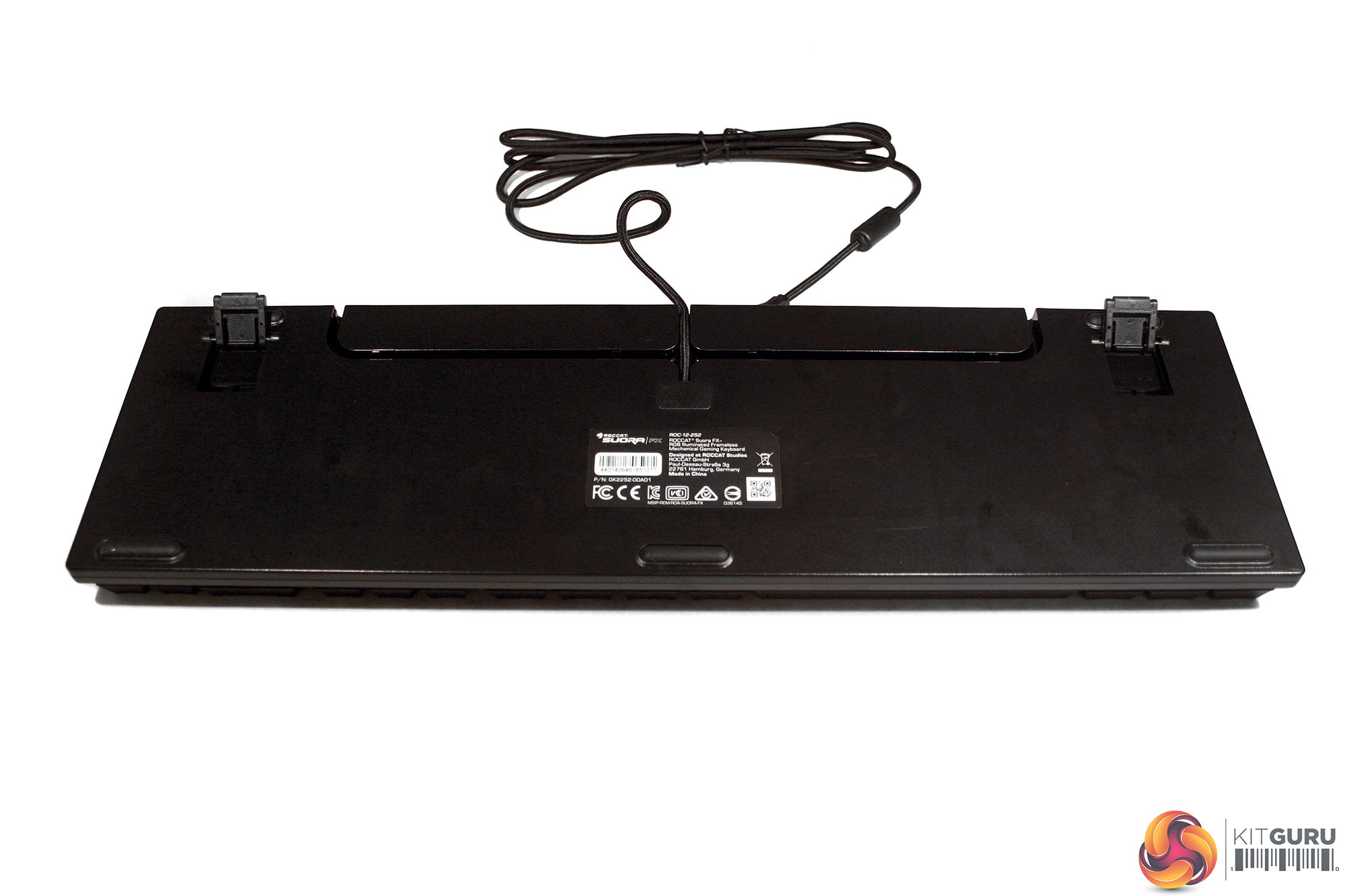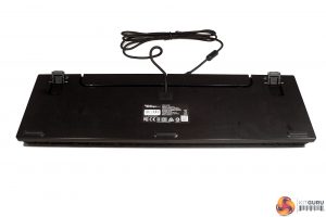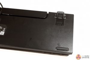 The underside of the board is as bland as you would hope and expect from an already expensive keyboard, though does feature some extendable feet and some rubber keyboard feet.
