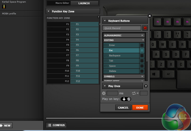 Moving on from the Apex M800's raw abilities however, I enjoyed the lighting options a lot. It was great being able to customise them to my heart's content, making little effects with the wave and breathe functions. I particularly liked having the lighting profile automatically change when I opened up certain applications – even doing so if you tab in and out. Like this one I made for Kerbal Space Program: