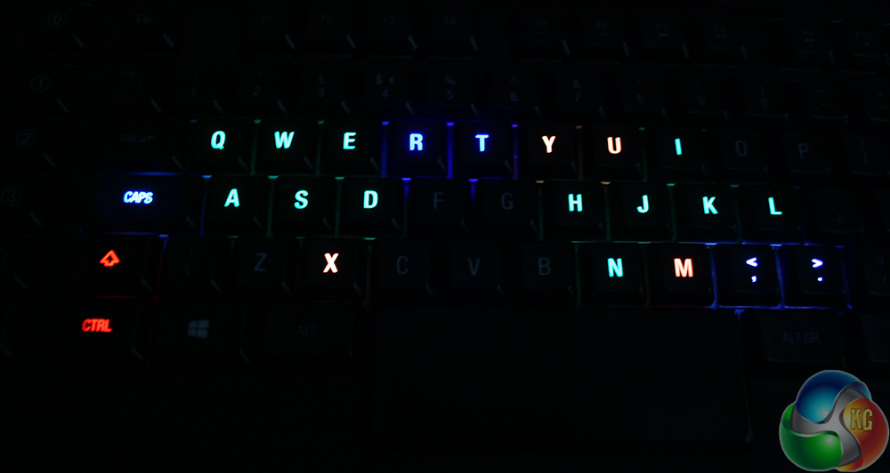 Although impressive, the lighting on this board still is not quite as good as the Corsair Vengeance K70. While it is possible to make short ‘animation-like' lighting changes by using the colour “black” to turn lights off to highlight other areas, it is not quite as nuanced and does not allow for some of the fancy effects that we were able to achieve with the Corsair board.