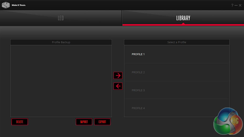 Cooler Master's software consists of two tabs, one for customising the RGB lighting and another for saving, importing and exporting profiles. Normally we would expect to find a macro tab or some advanced settings like adjusting the keyboard's polling rate but these have been left out for now.