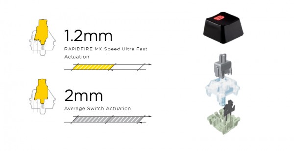 As you can see, Cherry MX Speed switches are built with a much shorter actuation distance compared to other switch types. This is something that we will dive deeper into throughout this review.