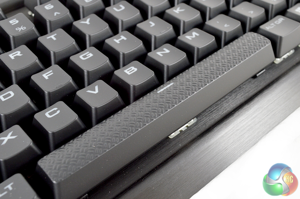 As you can see, Corsair has fully reverted to its old logo. While many parts of this keyboard are the same, Corsair has textured the space bar this time around to mix things up a bit.
