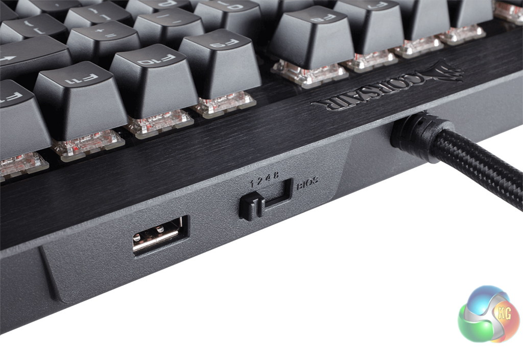 As much as I liked the original K70 RGB keyboard, it did lack a USB pass-through, which seems like an oversight when you're spending £150 on a keyboard. Fortunately, that has been fixed this time around, with a single USB port built into the back of the keyboard next to the polling rate switch.